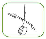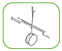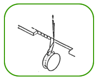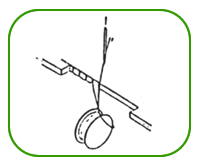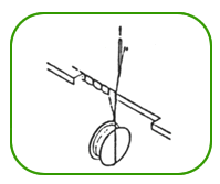 2.針の上昇によって上糸がたるみ、このループ状の上糸をかまの剣先がひっかけます。